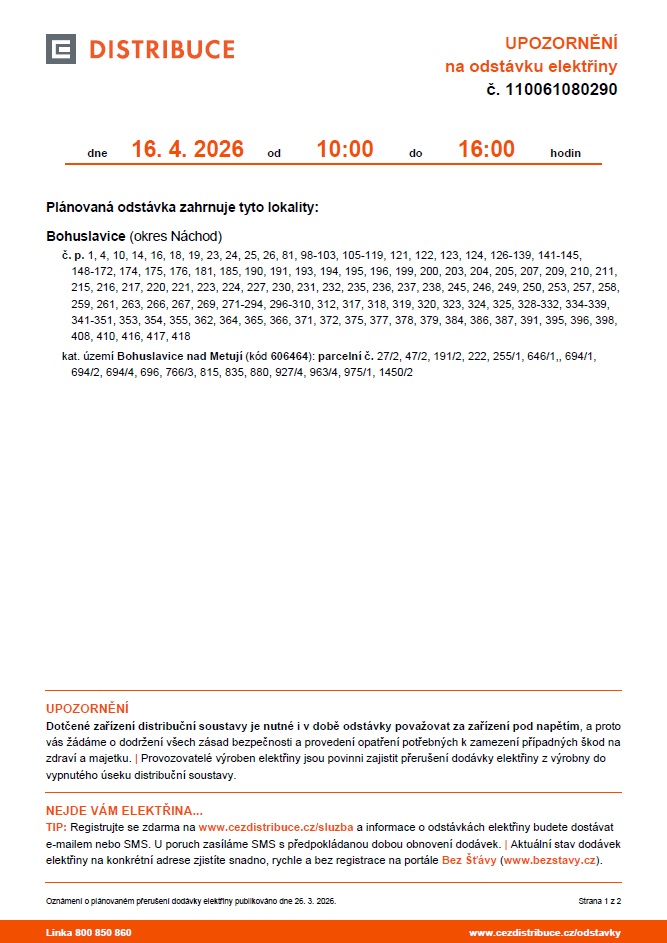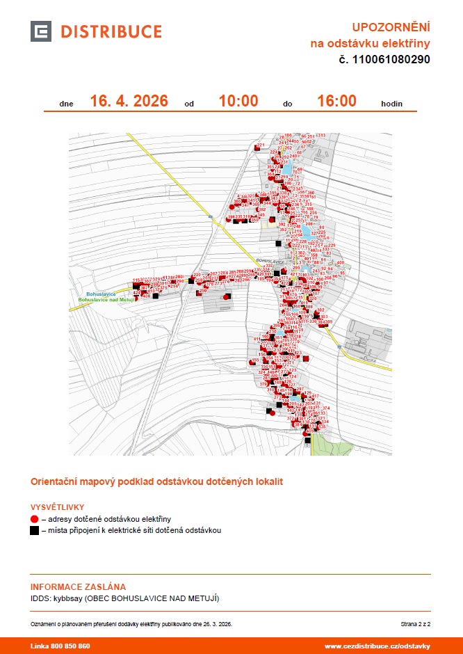 Upozornění na odstávku elektřiny č. 2